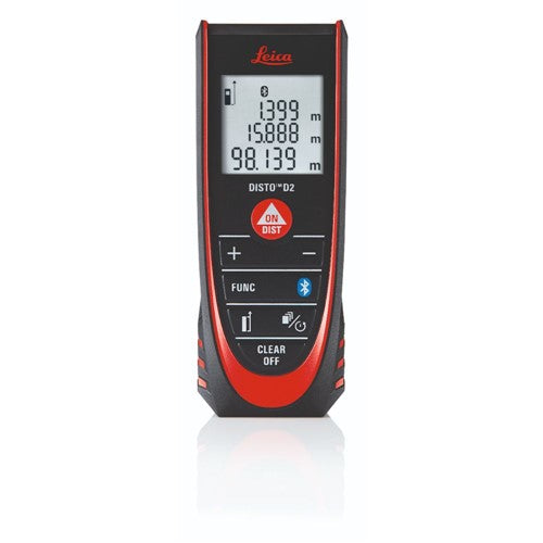 The Leica DISTO D2 is a 7 measurement mode laser distance meter. A fully-featured LDM that's designed for multiple purposes, the D2 is easy to operate and builds on the D1 with more functions, higher accuracy (± 1.5 mm / 1/16"), and greater range at 100m (330').