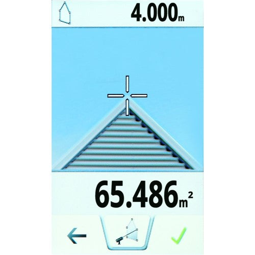 When you use the S910, you won't need a ladder because the S910 has Point-to-Point (P2P) measurement technology built in. The S910 will compute the distance between two points, regardless of height or angle. You can also take multiple P2P measurements to measure complex planes, such as roofs.